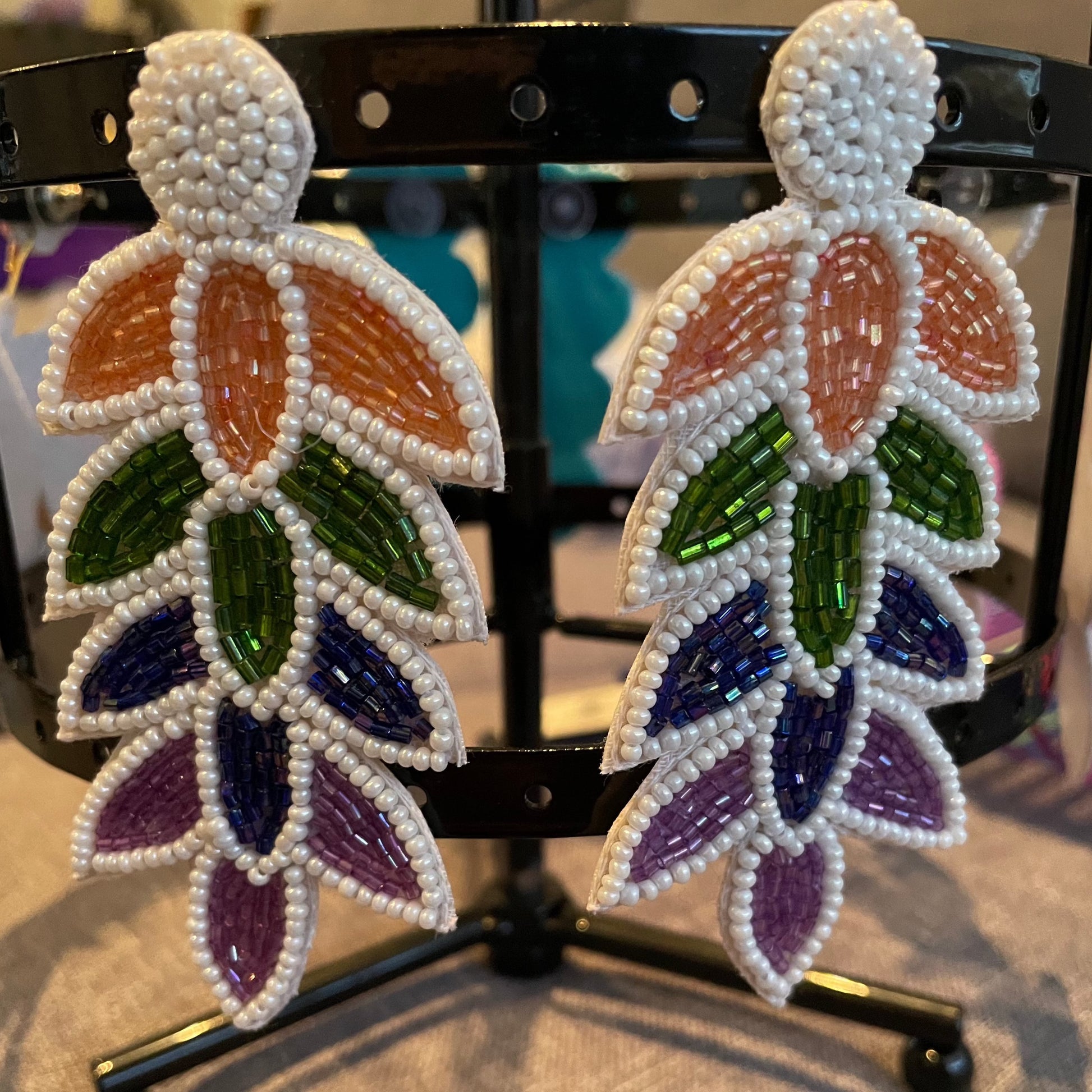 Meet Daksha, your new go-to for earrings with a pop of personality! These beaded beauties artfully capture an array of colorful leaves, adding a touch of a whimsical vibe to your look. Whether you're stepping out for a night on the town or an afternoon in the park, you'll be sure to make a statement with these gorgeous earrings!
