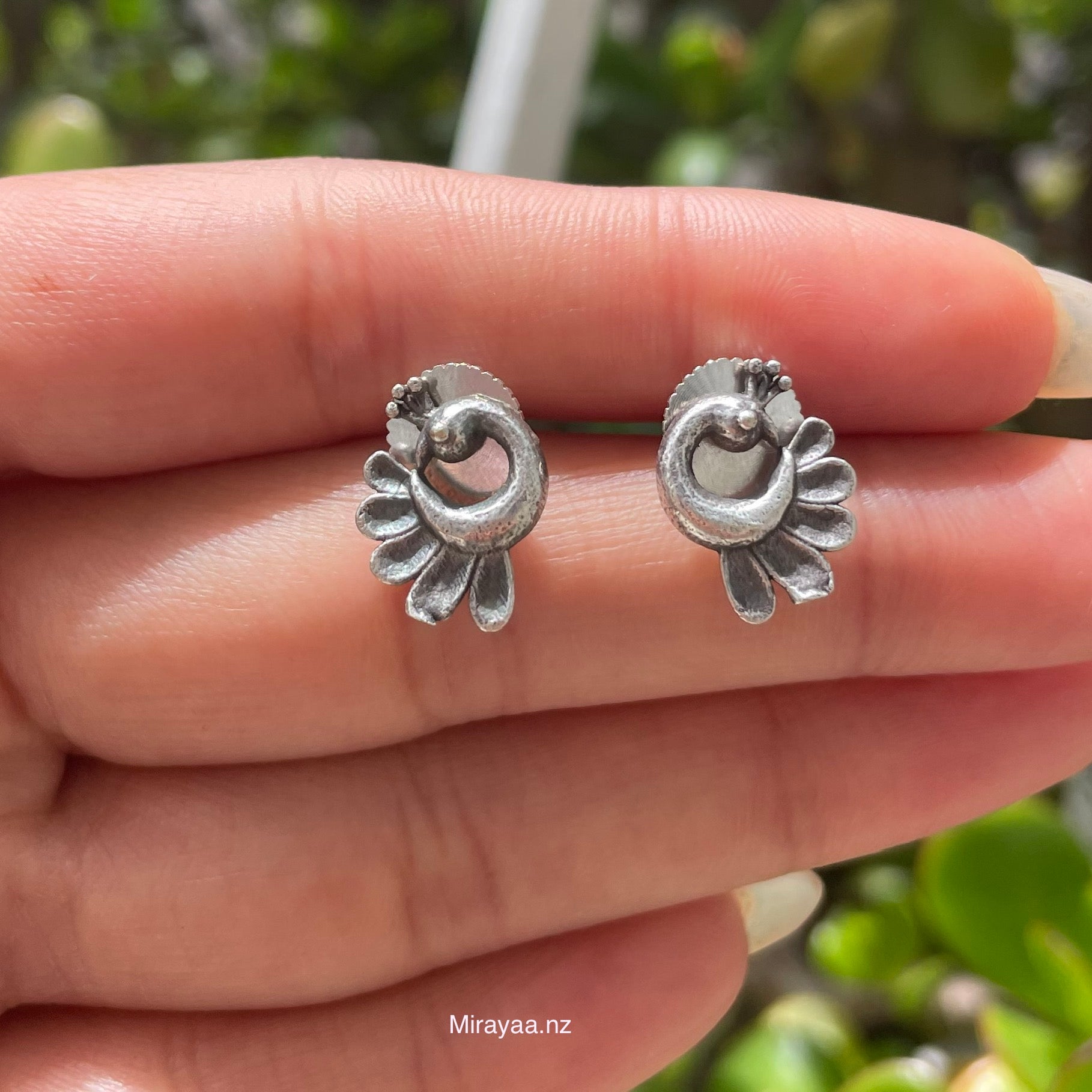 Morni is a pair of small peacock-inspired studs that bring a unique touch of glamour to any outfit. The studs feature intricate detailing and an eye-catching design that will turn heads. The subtle design and small size will make them a timeless addition to your wardrobe.